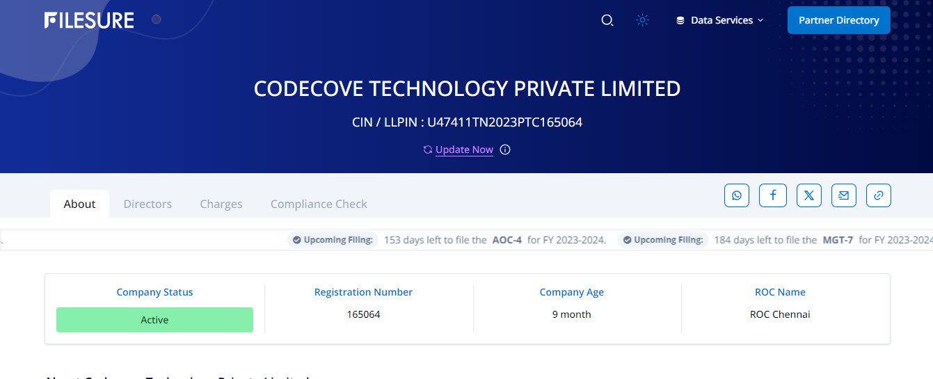 For those seeking the most accurate and comprehensive company and director information, Filesure.in is your go-to resource. Visit our website at www.filesure.in to explore the latest data and utilize the "Update Now" feature for real-time updates.