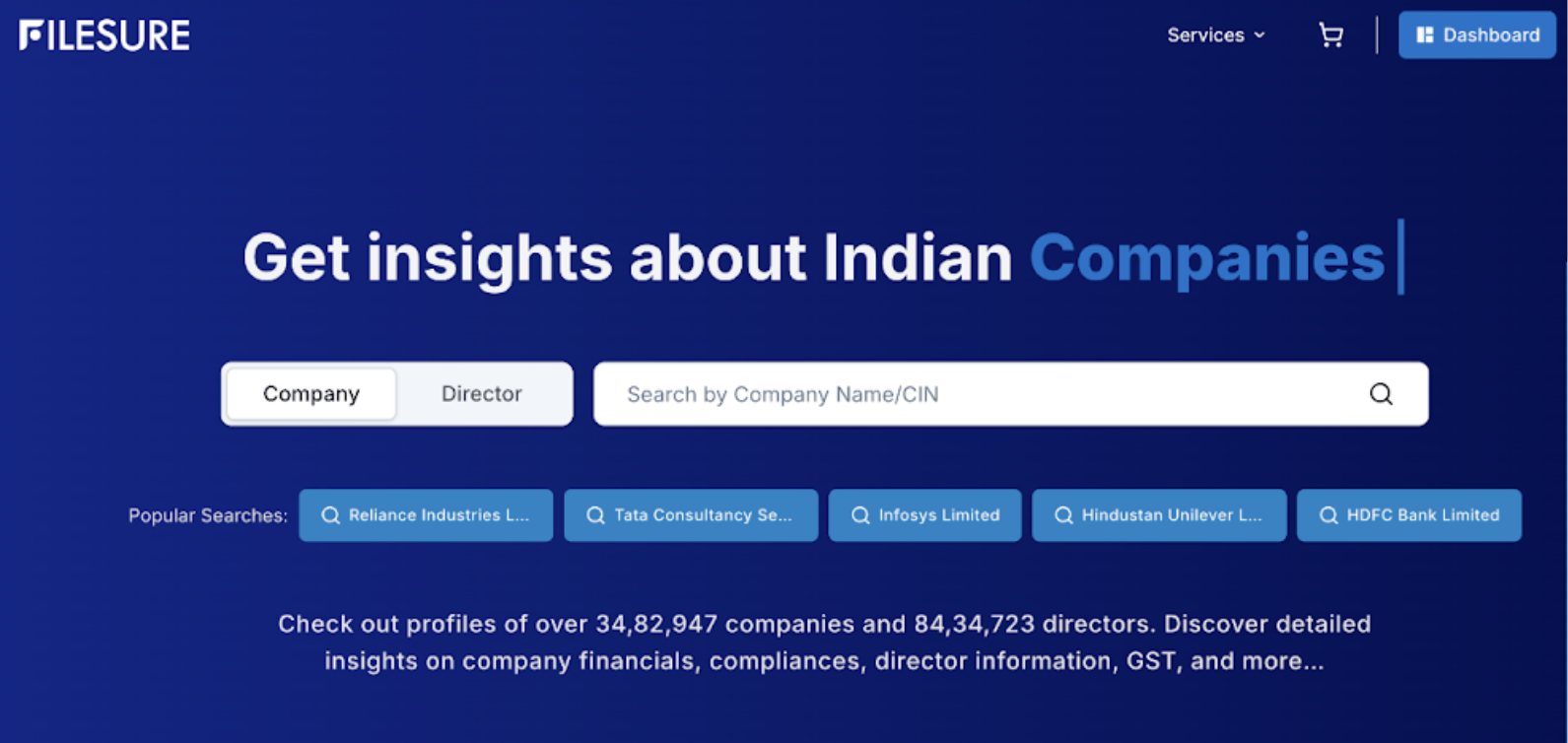 FileSure allows users to search companies using company name or CIN.