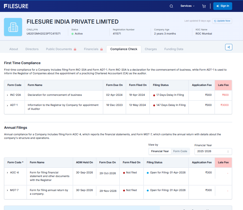 Compliance plays a critical role in India with evolving regulations. The Filesure highlights compliance status clearly & helps users identify risk signs early.