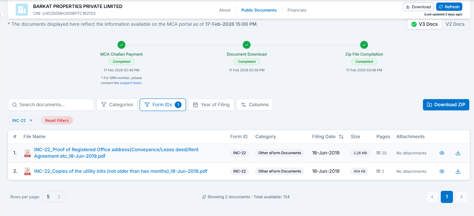Filesure provides access to documents exactly as they are made publicly available by the MCA portal.