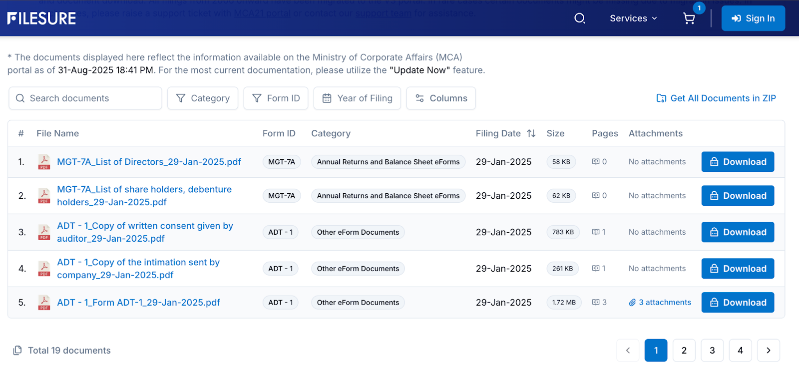The platform allows access to MCA filed documents. They include incorporation certificates, annual returns & statutory filings. It supports compliance checks & legal verification.