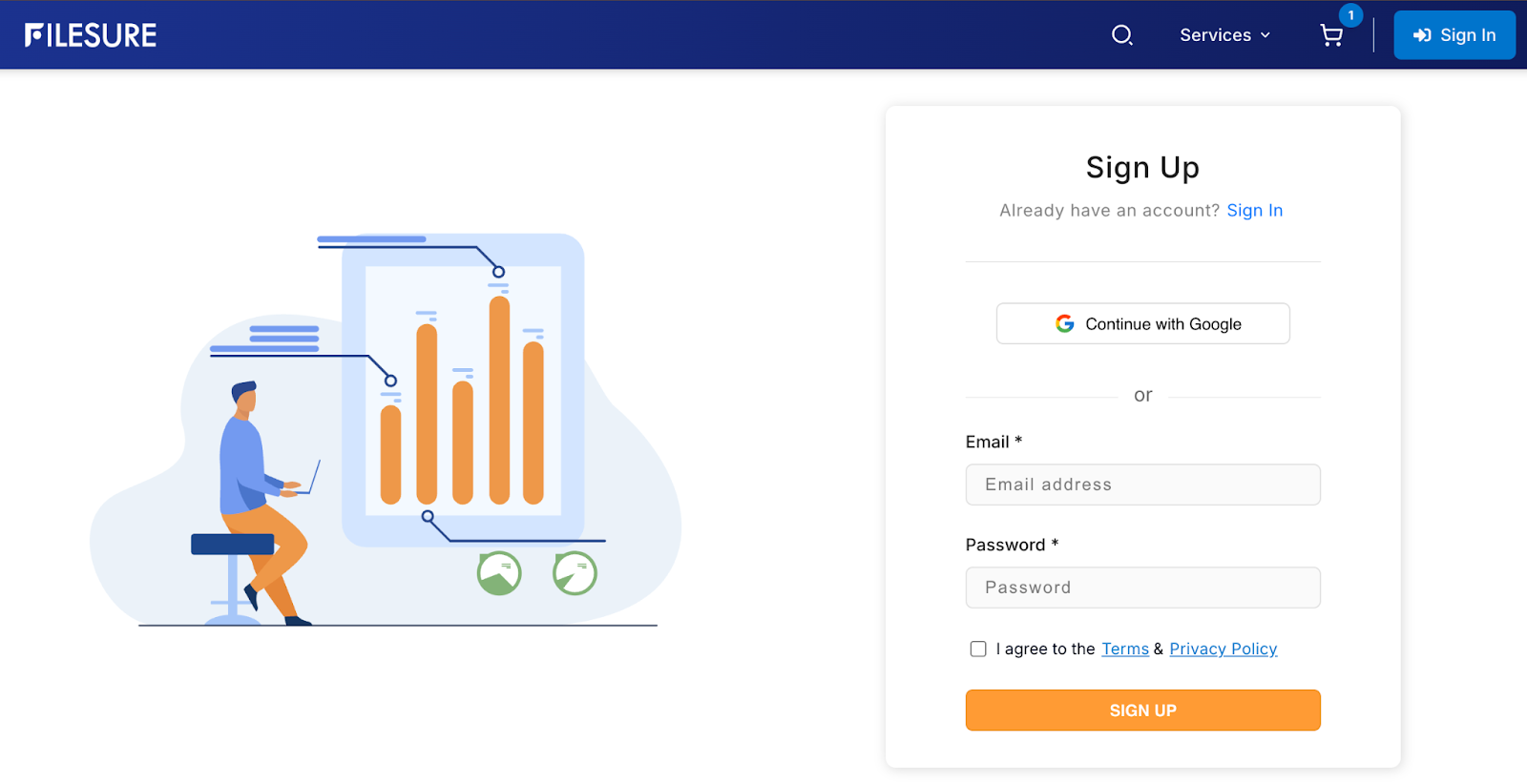 The users can register on the FileSure website easily.